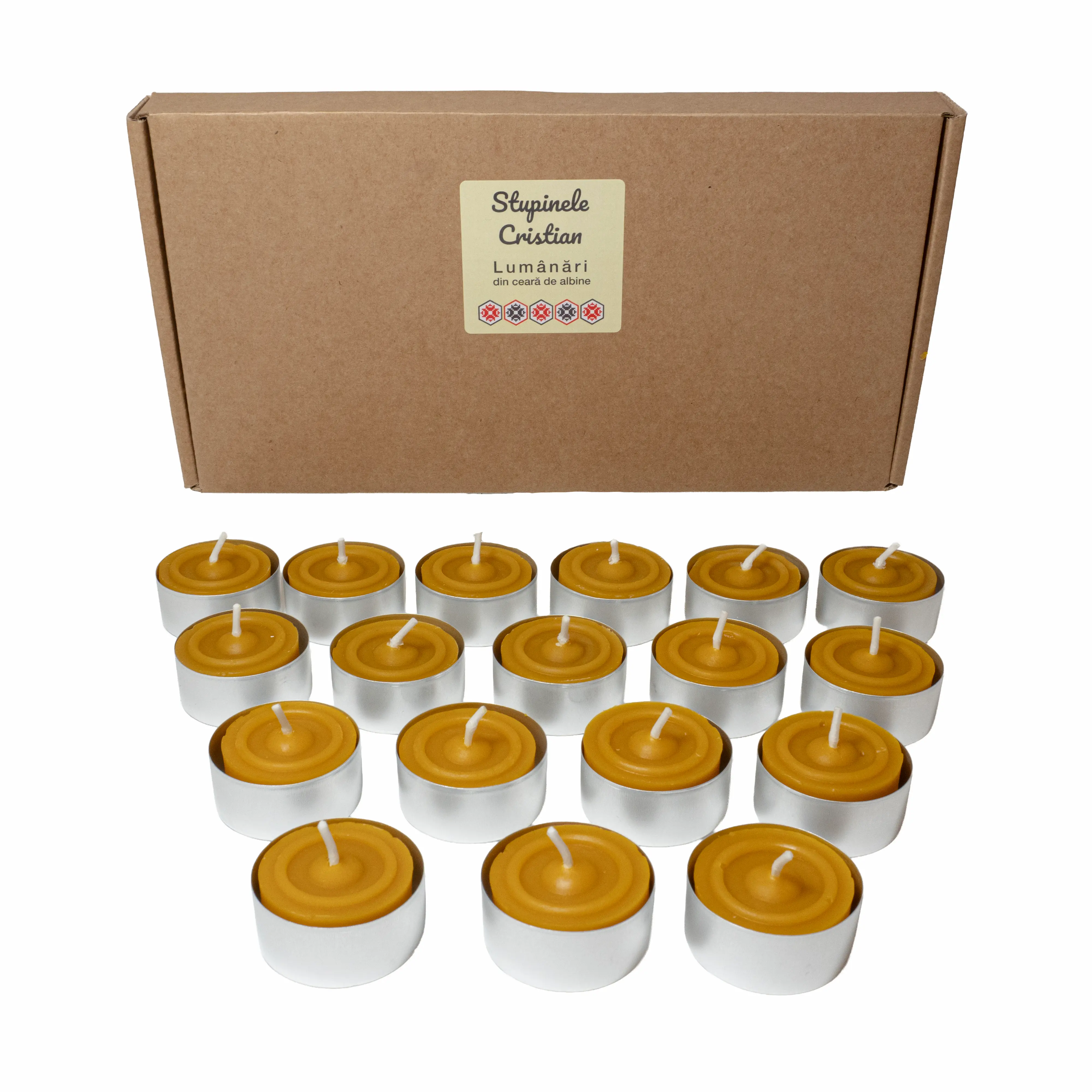 Rezerve lumânări pastilă din ceară naturală de albine, 18 buc, în cupă de aluminiu
